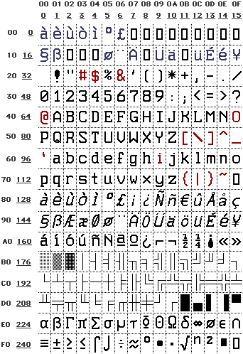 Generic PrintersAs with Epson printers, other vintage dot-matrix printers often use the higher codes for a second set of characters with a different style, usually italic. Each character in this alternate character set uses the standard ASCII number plus 128. An example of such coding is shown in the table below:-