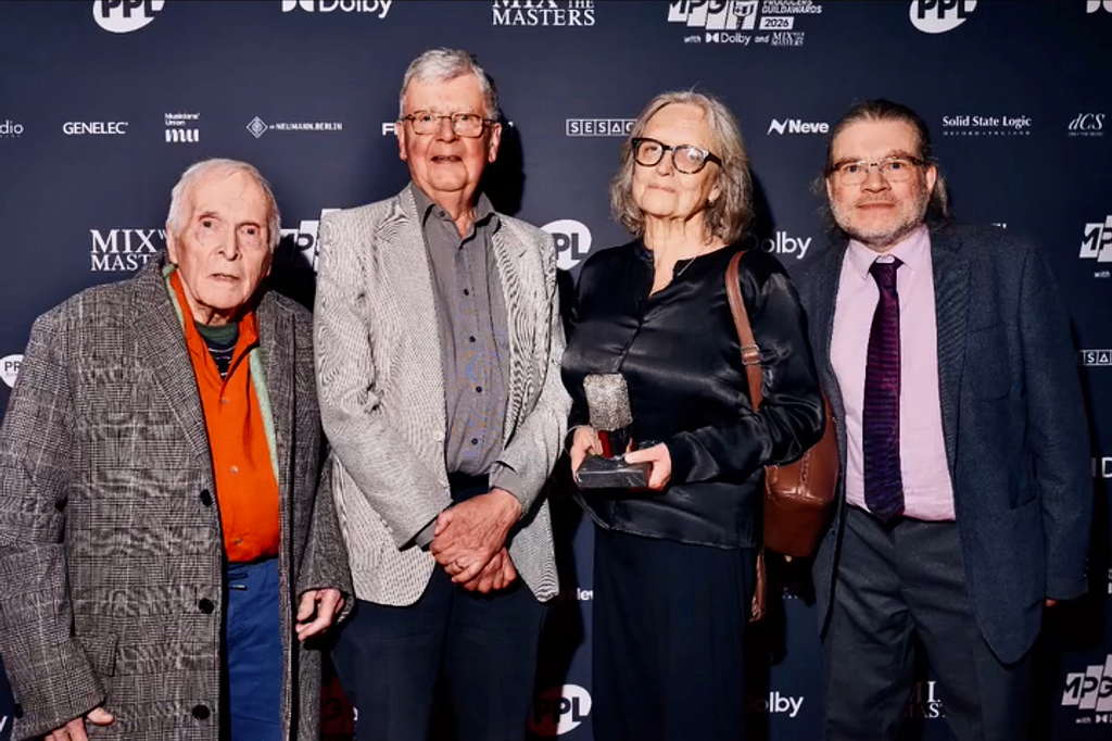 Roger Limb, Peter Howell, Glynis Jones and Mark Ayres receiving the 2026 MPG Pioneer Award. © MPG.
