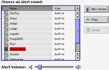 This part of the panel is shown below, with Simple Beep chosen as the alert sound.