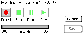 Sounds in SimpleTextSimpleText, the basic text editor supplied with the Classic Mac OS, can also record sounds and automatically save them in the current text file. To make a recording, select Record in the Sound menu and the standard recording window appears. Once your recording is complete you can recall it by selecting Play. To get rid of the recording, simply select Erase.