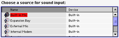 This part of the panel lets you select one of the available sound input devices, as shown below:-