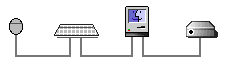The Apple Desktop Bus (ADB), as fitted to older Mac OS computers, also allows several devices, such as a keyboard, mouse or modem, to be connected at once, as shown here:-